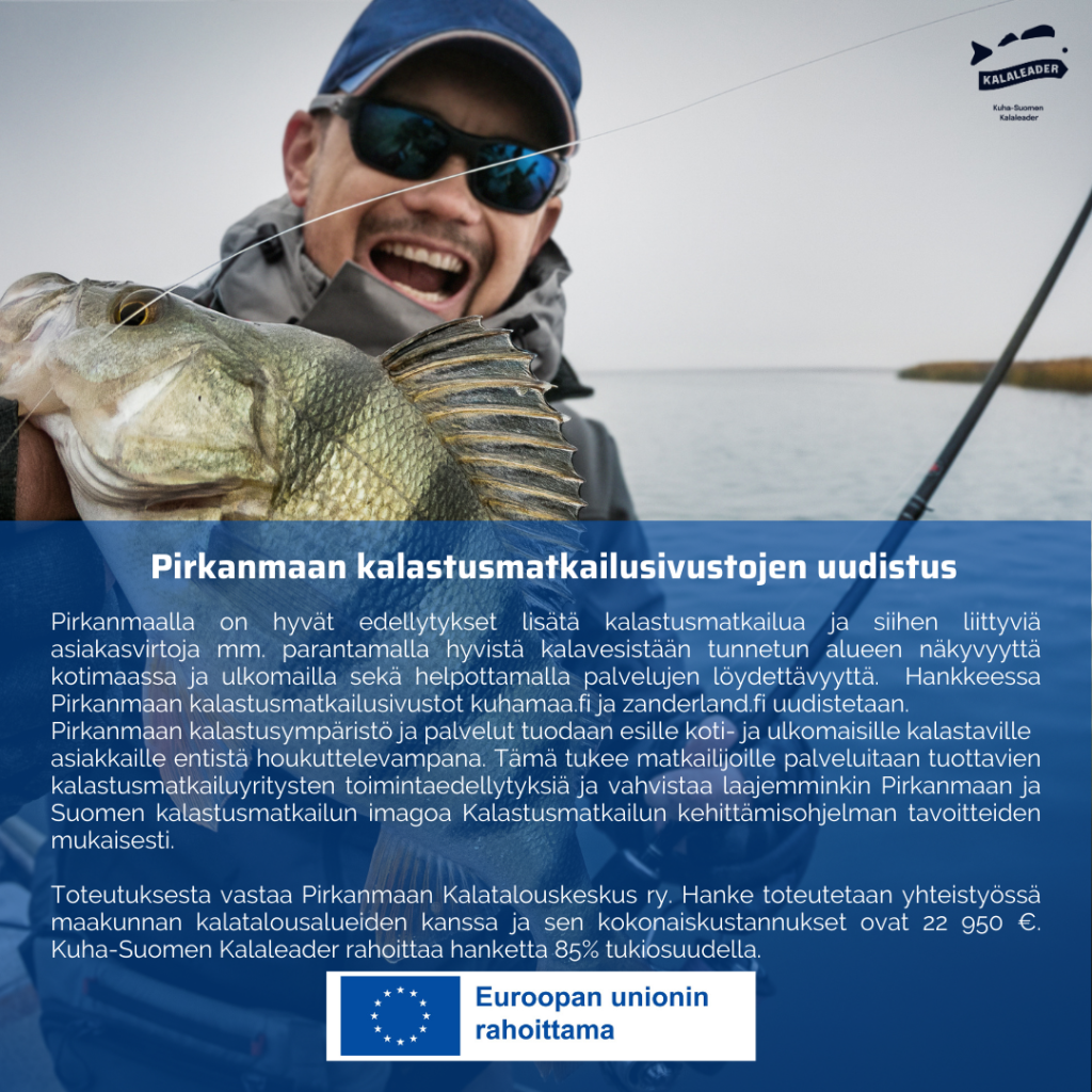 Pirkanmaan kalastusmatkailusivustot kuhamaa.fi ja zanderland.fi siirretään uudelle käyttäjäystävällisemmälle, nykyaikaisemmalle ja helposti päivitettävälle webalustalle. Samalla uudistetaan sivustojen sisältöä. Uudet näyttävät verkkosivut parantavat käyttäjäkokemusta ja lisäävät asiakkaiden mielenkiintoa alueen tarjontaa kohtaan. Uudistuksen tuloksena Pirkanmaan hieno kalastusympäristö ja palvelut tuodaan esille koti- ja ulkomaisille kalastaville asiakkaille entistä houkuttelevampana. Tämä tukee matkailijoille palveluitaan tuottavien kalastusmatkailuyritysten toimintaedellytyksiä ja vahvistaa laajemminkin Pirkanmaan ja Suomen kalastusmatkailun imagoa Kalastusmatkailun kehittämisohjelman tavoitteiden mukaisesti.